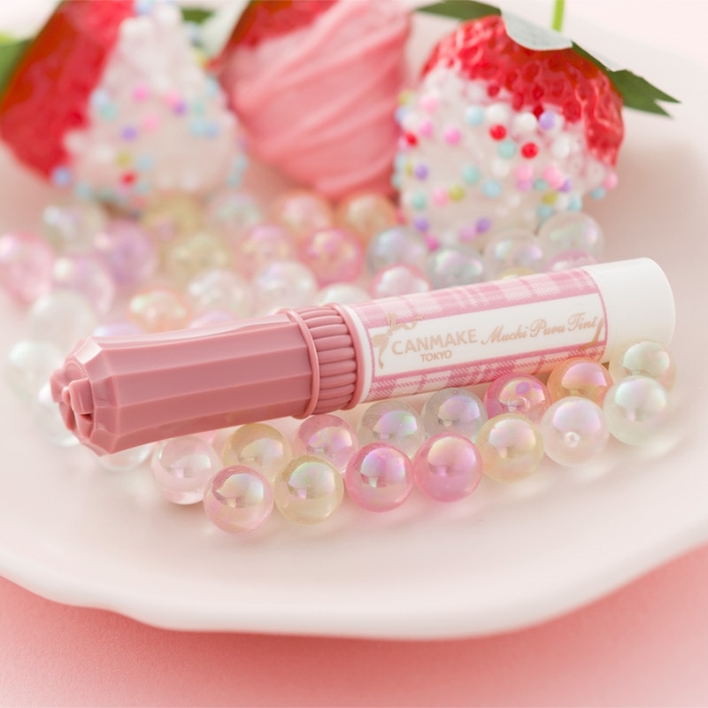 プランパー効果(※)で、むっちりぷるぷるの唇に仕上がる艶ティント。自然な血色感(※)を演出する粘膜カラー“ストロベリーボンボン”は、「CANMAKE(キャンメイク)誕生」40周年記念カラー。とろりとなめらかな付け心地でシロップのように“ちゅるん”としたツヤ感に仕上がり、美発色が長持ちします。