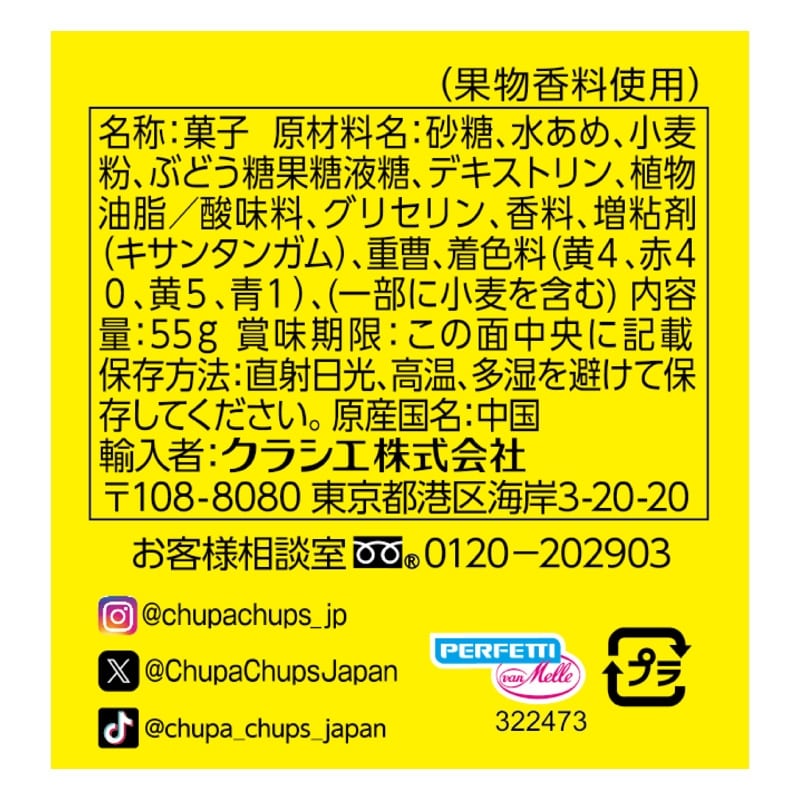 チュッパチャプスから、チューブ型グミがラインアップ。2層のチューブ型で、むぎゅっとした新食感が楽しめます。表面のすっぱいパウダーがアクセントになり、ひと口ごとにクセになる味わい。青りんご、パイナップル、オレンジ、ストロベリー、グレープの5つのフルーツフレーバーをアソート。カラフルでポップな見た目も楽しいグミです。