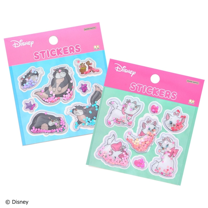 2026年4月16日(木)までPLAZA先行販売!ピンクのカラーリングもかわいい、小さな相棒たちを集めたシリーズです。「おしゃれキャット」マリー、「シンデレラ」ルシファーのスパンコールが入ったシャカシャカ楽しいシールです。スマホケースなど身の回りのアイテムをかわいくデコレーションできます。