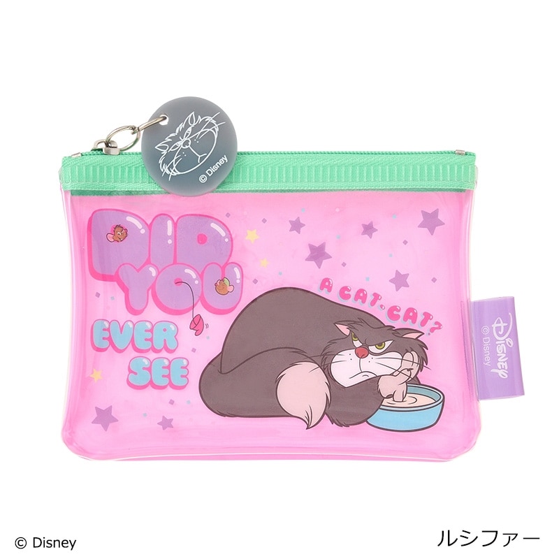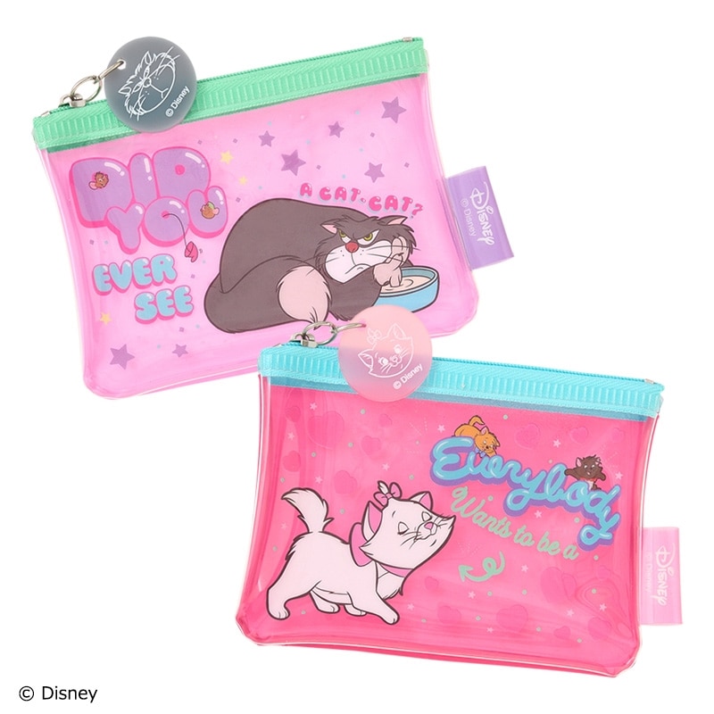 2026年4月16日(木)までPLAZA先行販売!ピンクのカラーリングもかわいい、小さな相棒たちを集めたシリーズです。「おしゃれキャット」マリー、「シンデレラ」ルシファーのコンパクトなクリアポーチ。クリア素材なので中に入っているものがわかって便利。目薬や常備薬・イヤホンコードなど小物収納におすすめです。