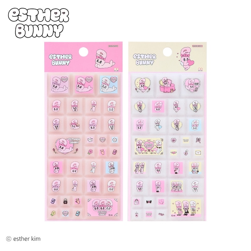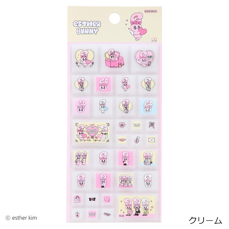ポップでガーリーなテイストが可愛いウサギのキャラクター「Esther Bunny(エスターバニー)」の自由にカットできるタイル型シールです。さまざまなものをデコレーションできます。自分だけのアイテムを作って持っていれば気分も上がります♪