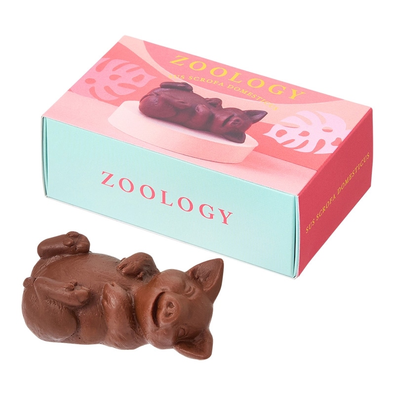 お腹を出して笑い転げる姿に思わず微笑んでしまいそう。大人の遊び心を感じさせるコブタのチョコレートです。 「ZOOLOGY」は、動物たちの愛らしい表情や迫力のある表情、野生の表情をリアルに表現したチョコレートブランド。コブタは幸運のモチーフでもあるので、大切な方へのギフトにぴったりです。