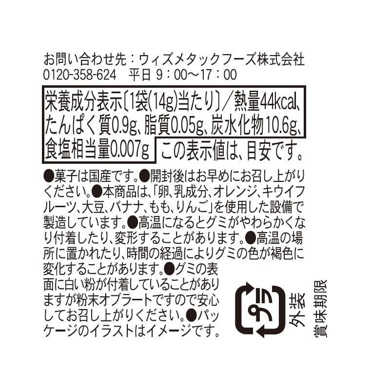 ●グミの表面に白い粉が付着していることがありますが粉末オブラートですので安心してお召し上がりください。