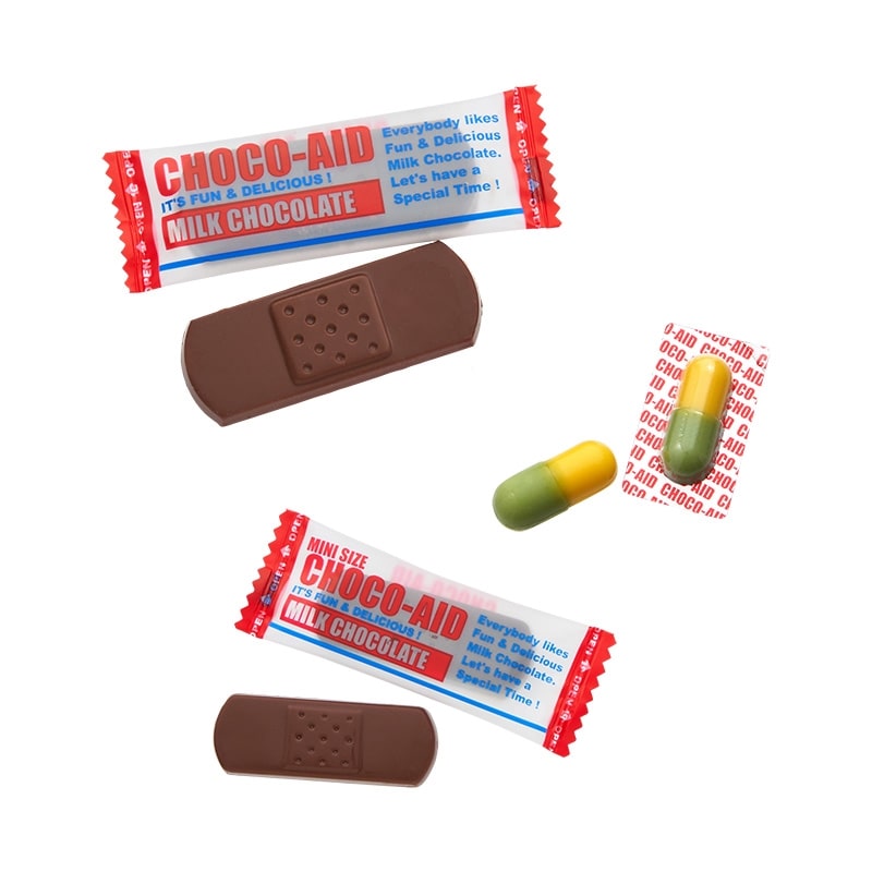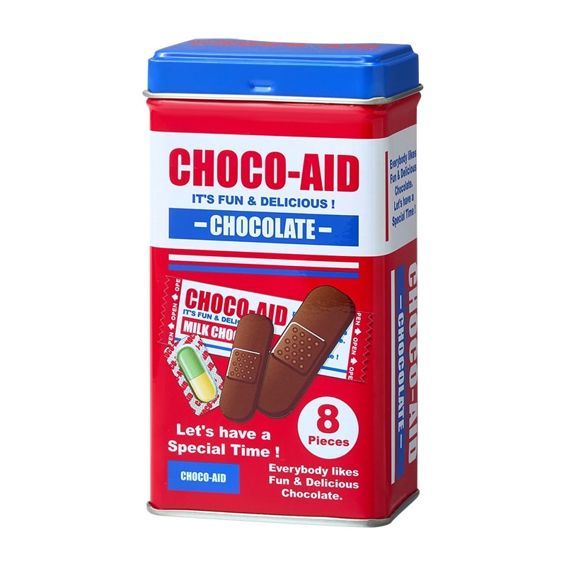 心の傷は甘いチョコレートで治るかも!? 海外のバンソウコウをモチーフにした、ユニークデザインのチョコレートです。中身の包装にもリアルさにこだわりが。バンドエイドのほか、注射器や薬瓶などのデザインも入っています。かわいいデザインの缶は、レッドデザインとブルーデザインで中身のチョコレートが異なります。