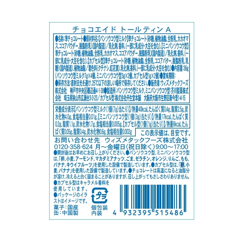 ※カプセル型チョコレートは、「卵、小麦、バナナ」を使用した設備で製造しています。