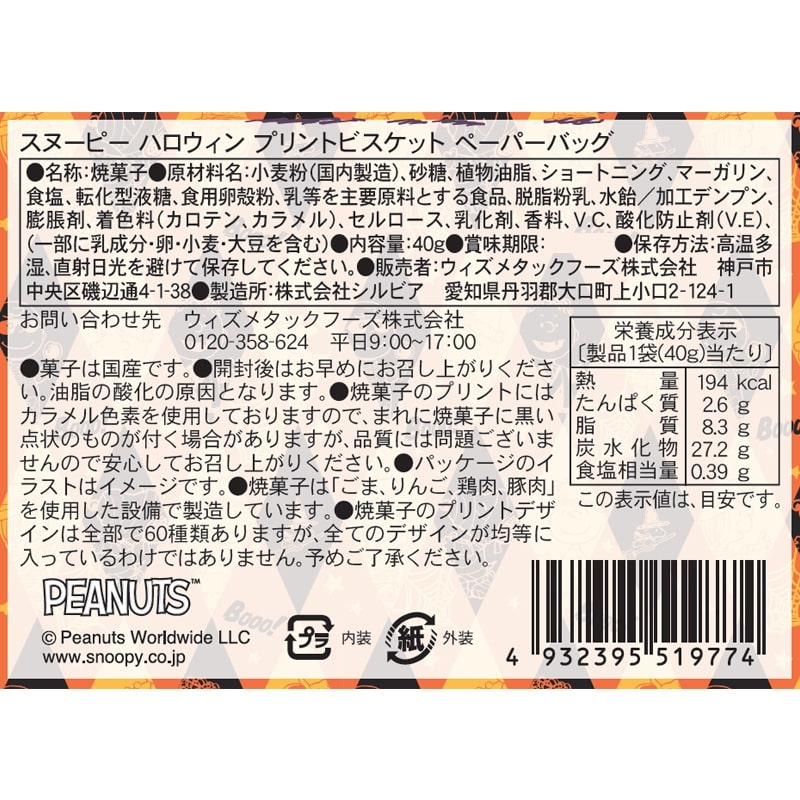 スヌーピー PEANUTS ハロウィン ビスケット ペーパーバッグ ※アソートの為種類は選べません