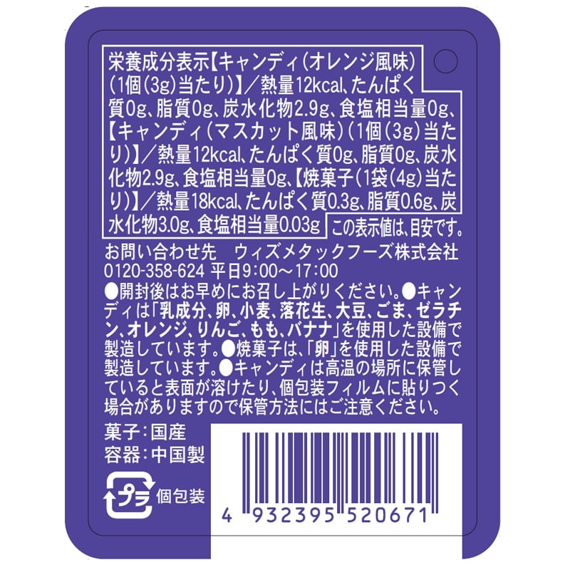 【内容量】13g(キャンディ(オレンジ風味6g、マスカット風味3g)、焼菓子4g×1袋)