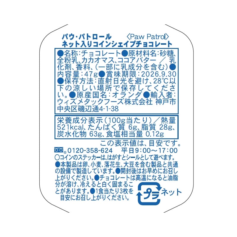 パウ・パトロール ネット入り コインシェイプチョコレート