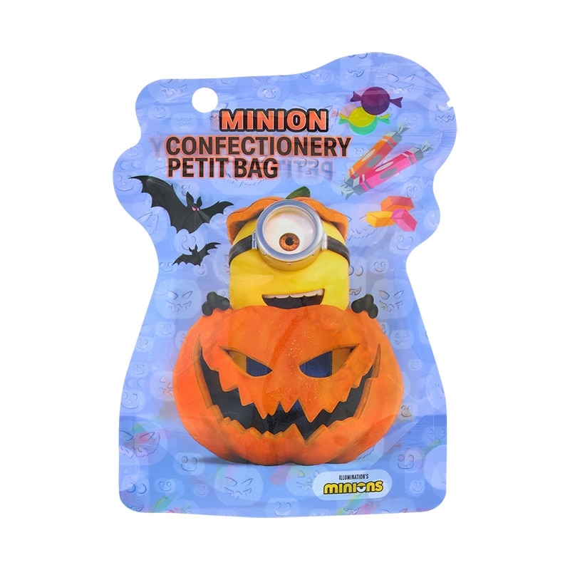 ミニオンズのハロウィンデザインがかわいいプチサイズのお菓子バッグ。中にはミニオンシェイプのチョコインクッキーとキャンディ入り。プチギフトにもぴったりのアイテムで、袋はジッパー付きなので、お菓子を食べたあとも小物などを入れて使用可能!アソートの為パッケージのデザインは選べませんが、どちらのデザインが届くかはお楽しみです。