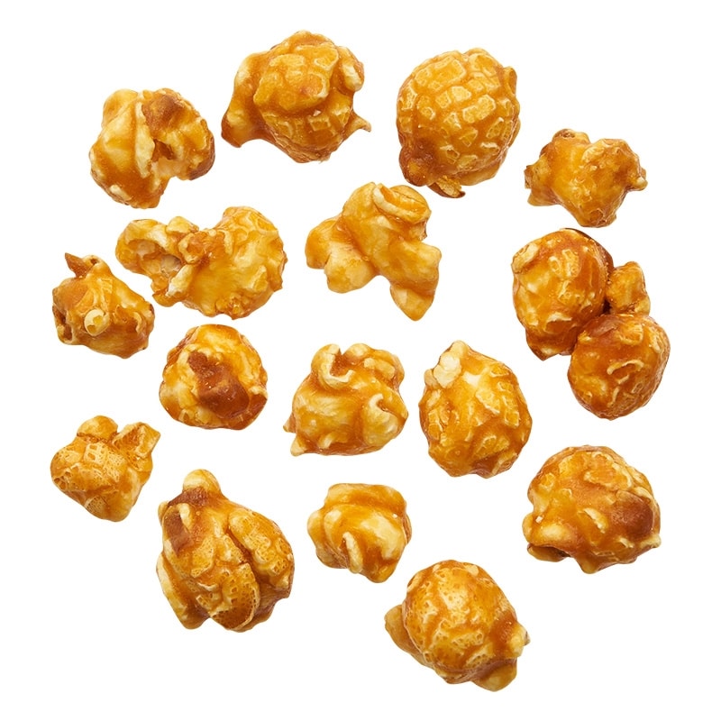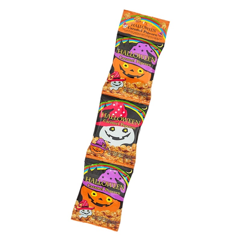 スイートなキャラメルフレーバーのポップコーンです。ミシン目で切り取り、3袋に分けて個配りにも最適です!