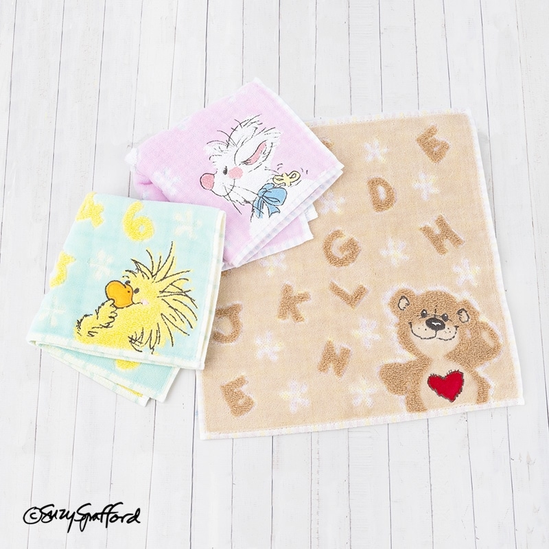 世界中で55年以上愛されているキャラクター、アヒルのウィッツィーとぬいぐるみのお友達のかわいらしい世界観が魅力の「Suzy's Zoo(スージー・ズー)」。ふわふわした手触りが可愛いミニハンカチ。素材には、吸水性の良い無撚糸を使用しています。何枚持っていても嬉しいハンカチタオルはプレゼントにもおすすめなアイテムです◎