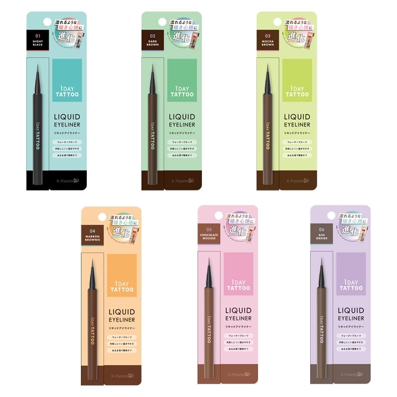「K-パレット」の1DAY TATTOOリキッドアイライナーaが、よりパワーアップしてリニューアル。筆の描きやすさや液のかすれにくさがさらに進化して、ひと描きで絶妙発色とクリアなラインを実現!肌なじみの良さ、洒落感、濃度など全方位にこだわって厳選された全6色のカラーバリエーションも必見。