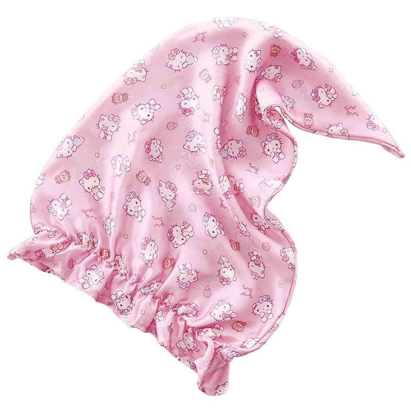 大人気シルクシャイニーナイトキャップがサンリオとコラボレーション!シルク100%のサラリとしたつけ心地で、髪をやさしく包み込んで、睡眠中の髪の乱れもまとめてくれます。眠っているキティちゃんのアートも可愛らしく、ギフトにもおすすめです。数量限定です。