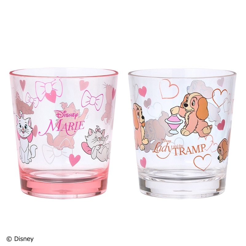 PLAZA限定!「おしゃれキャット」マリーと「わんわん物語」レディのプラスチックカップです。軽くて割れにくいアクリル樹脂製なので、普段のドリンクウェアとしてだけでなく、洗面回りでのうがいコップとしての使用もおすすめです。