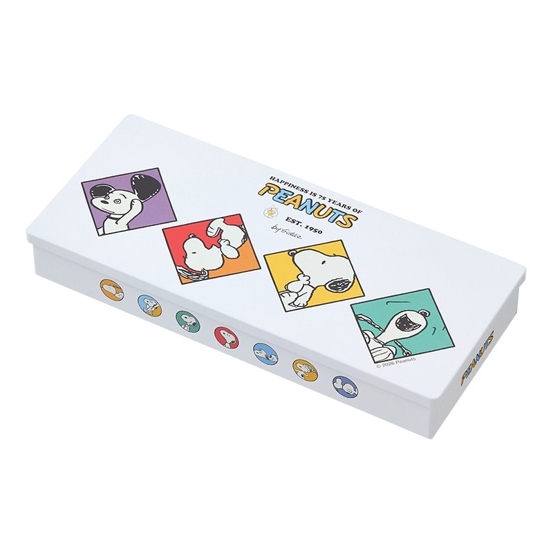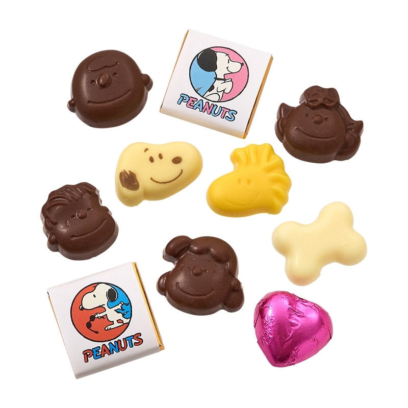 さまざまな年代のアートを使用した、PEANUTSシリーズの特別感あふれるチョコレート缶です。スヌーピーやPEANUTSの仲間たちの形をしたチョコレートと、スヌーピーデザインの巻紙チョコレートなどを詰め合わせました。見ても食べても楽しめるアソートで、ギフトにもおすすめのアイテムです。