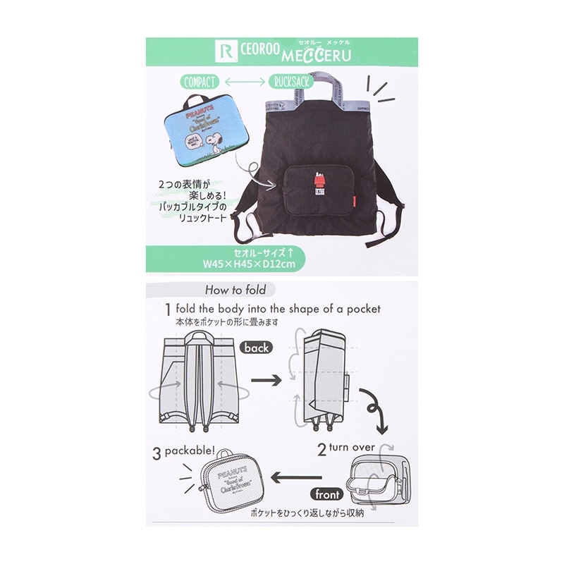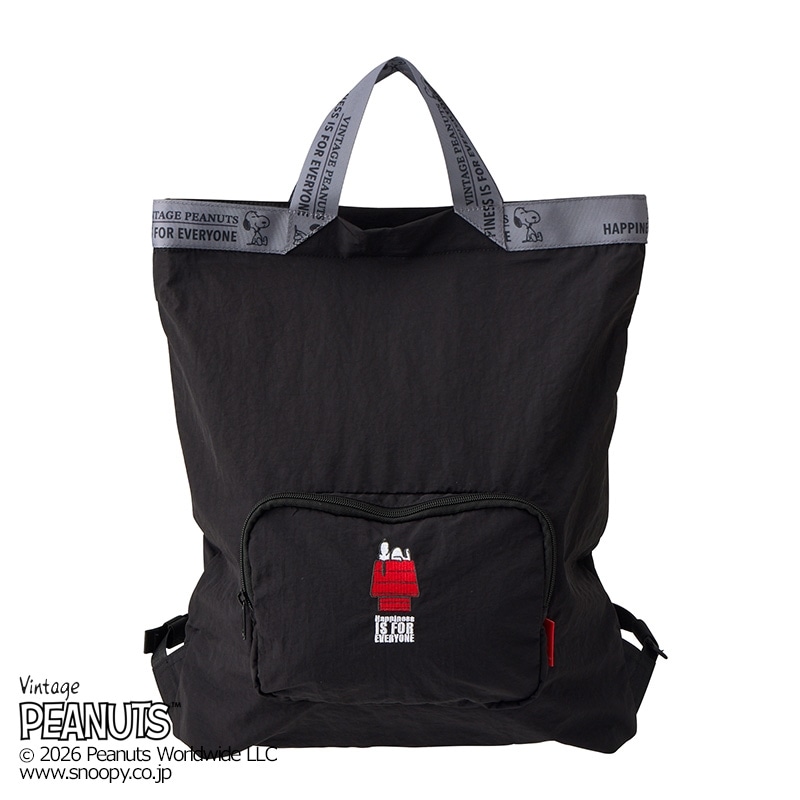 「ROOTOTE(ルートート)」から新しい「スヌーピー」デザインが登場!コンパクトに折りたたんで持ち歩けるパッカブルタイプのリュックトートで、旅行などのサブバッグとしても活躍します。開口部はダブルファスナーでしっかり閉じられるから安心。幅広のショルダーベルトなので荷物が多くても肩に食い込まず、快適。背面には縦型ポケットも付いています。