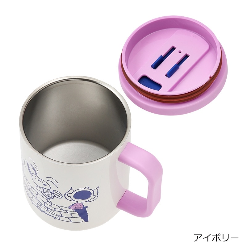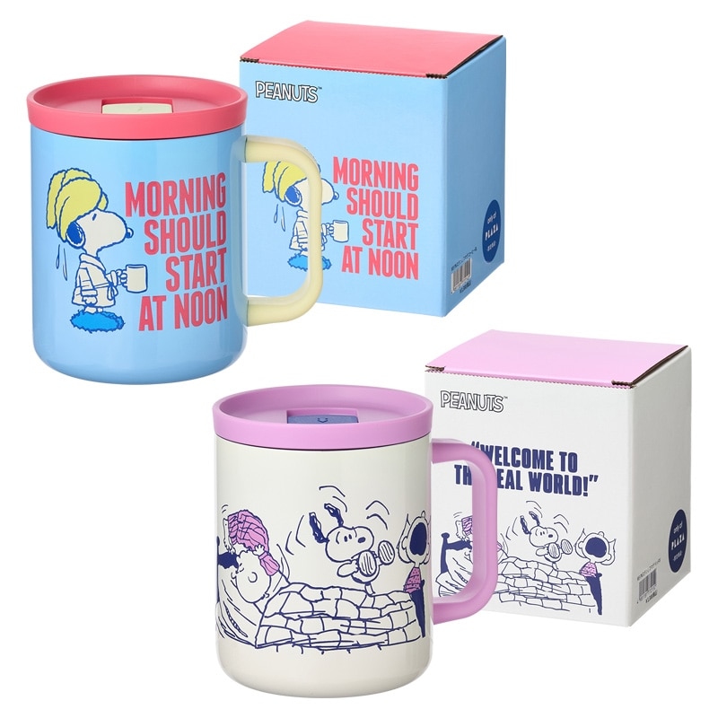 PLAZA限定!保温保冷ができるステンレスマグ。スヌーピーやPEANUTSの仲間たちが描かれた可愛いデザイン。蓋つきなので、デスクやオフィスでもホコリなど気にせず飲み物を楽しめます。