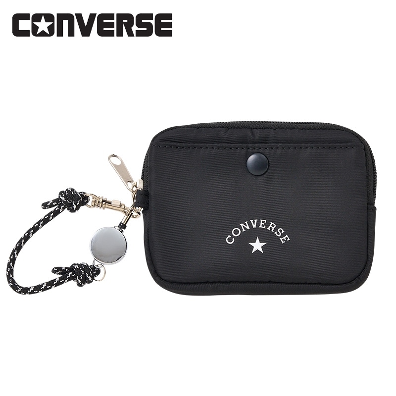 PLAZA限定!「CONVERSE(コンバース)」のポーチ付きパスケースです。フロントにもポケットが付いており、中に仕切りもあるので小銭やイヤホン、鍵など小物をなくさずに持ち運べます。お使いのバックパックやバッグにつけて持ち運ぶことができるので便利です。