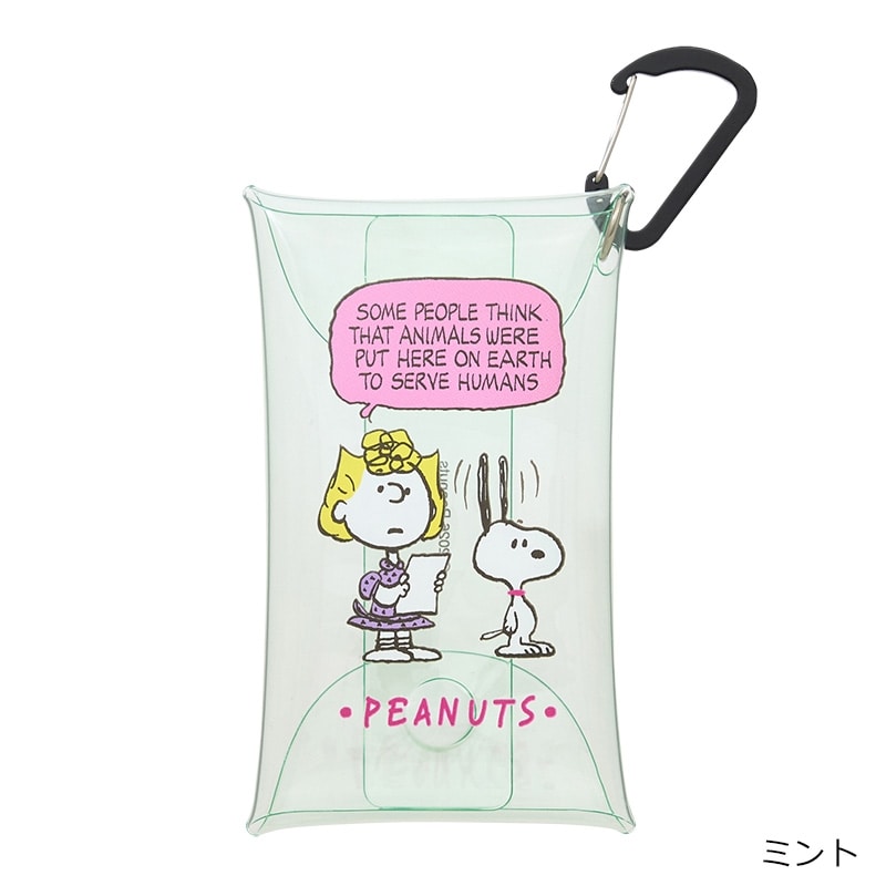 スヌーピーやPEANUTSの仲間たちのデザインがかわいいマルチケースです。カラビナ付きなので、バッグやデイパックなど好きな場所に付けられます。ナップボタンを2つとも開けば全開にできるマルチケースは、コインやリップ、イヤホンなどの小物を入れるのに便利です。