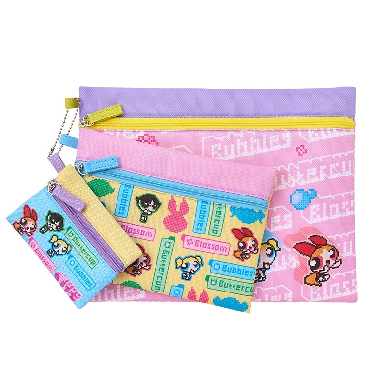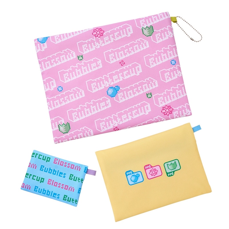 ポップなカラーリングとピクセルアートがかわいい「THE POWERPUFF GIRLS (パワーパフ ガールズ)」の3連ポーチです。大・中・小のサイズ違いがセットになっているので、用途に合わせて使い分けられるのが嬉しいポイント。コスメや小物、文具やガジェット類など、細かいものの整理にぴったりです。旅行の際の仕分けポーチとして使うのもおすすめです。