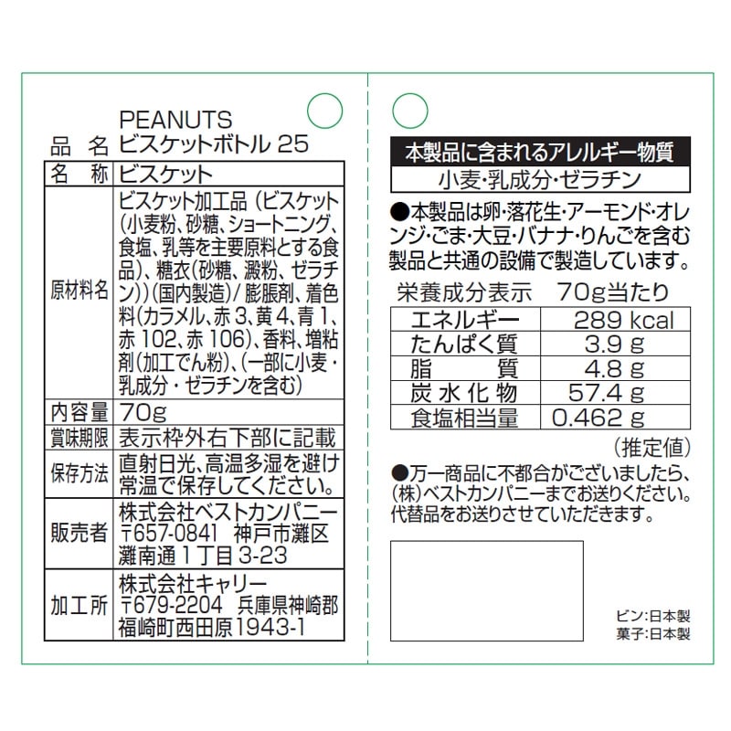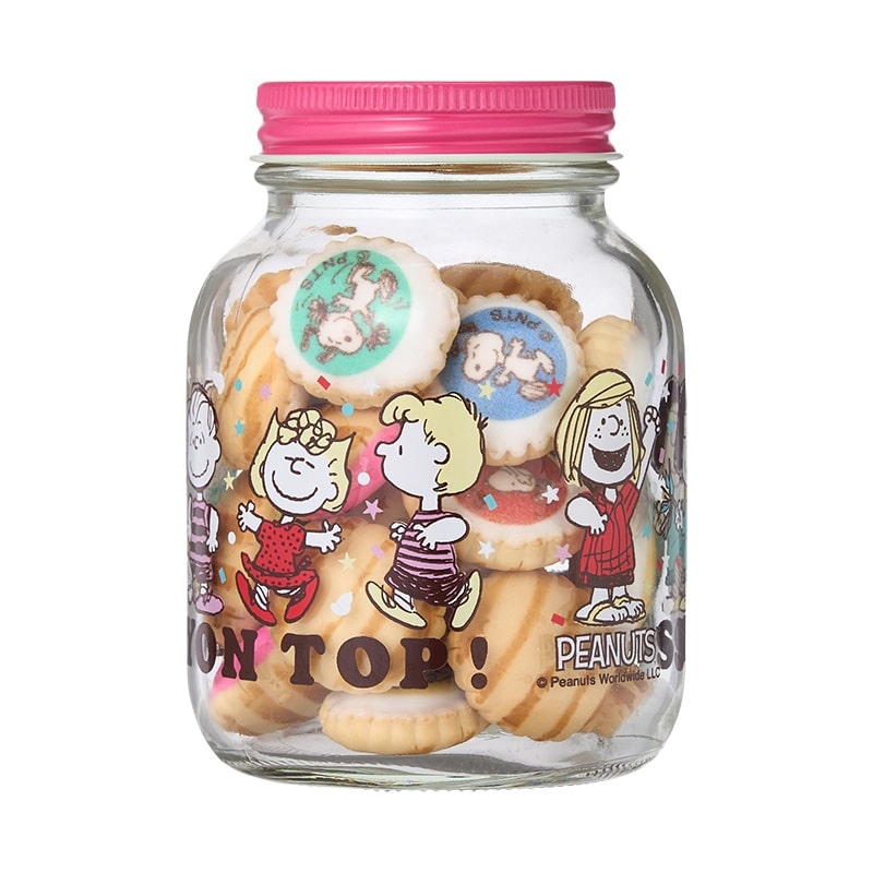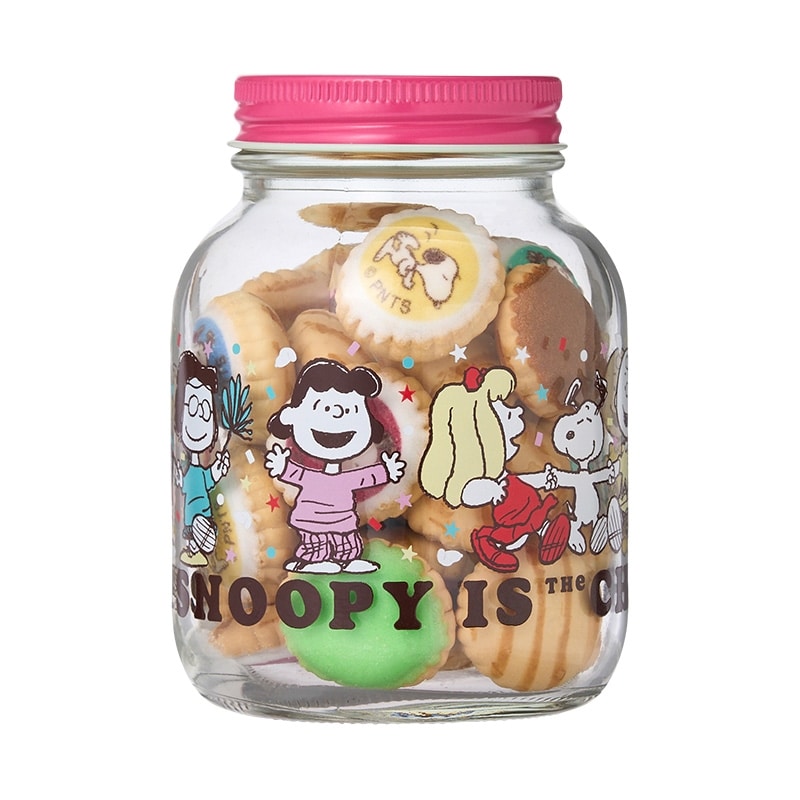 PLAZA限定!「PEANUTS」デザインのビスケットボトルです。 ボトルの中には、スヌーピーがプリントされたビスケット入り♪ 食べ終わったあとのボトルも何に使うか楽しみなビスケットボトルは自分用にはもちろん、プチギフトにもおすすめです。
