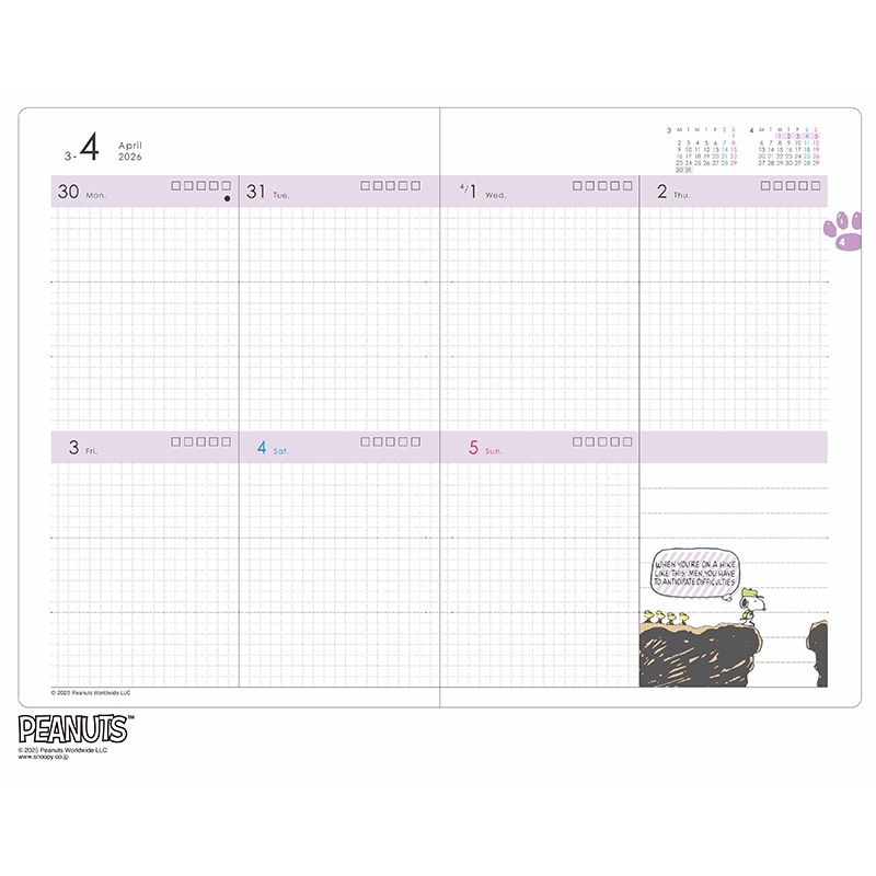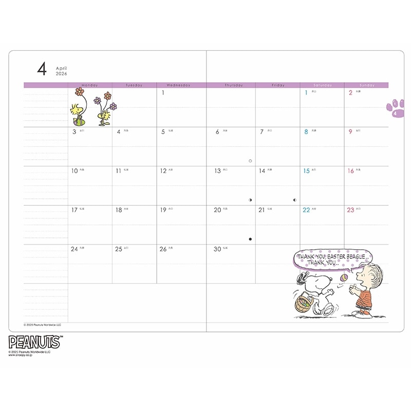 【2026年3月始まり】スヌーピー PEANUTS B6ブロックウィークリー ダイアリー