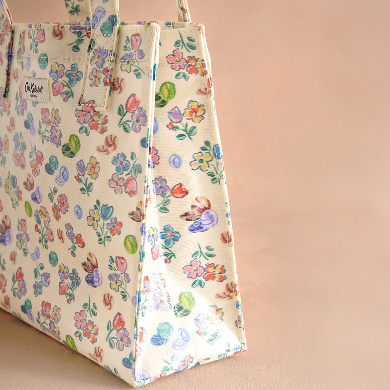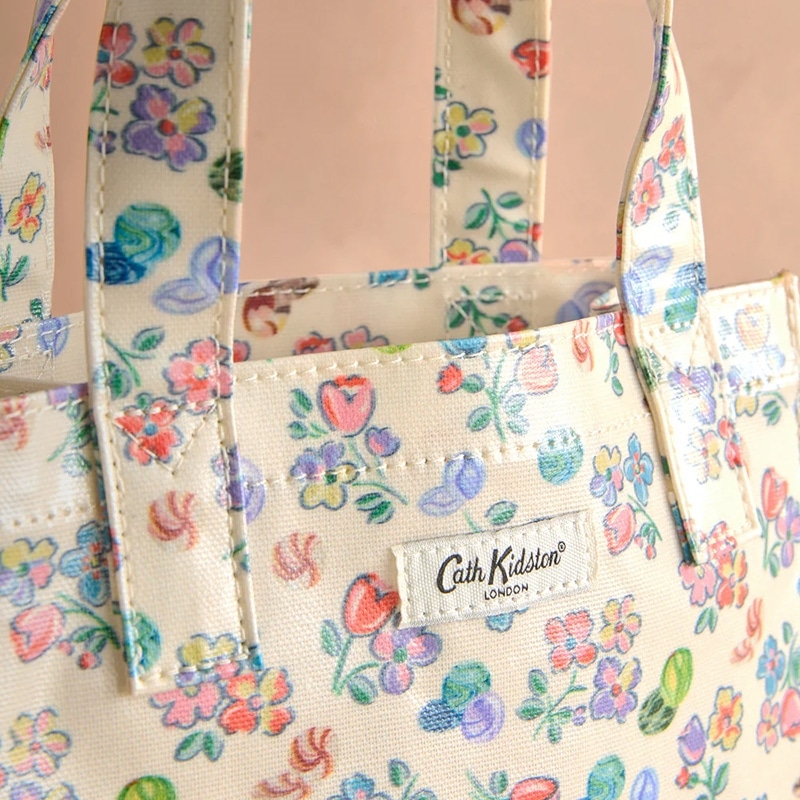 Cath Kidstonで人気のブックバッグの使いやすいスモールサイズ。特徴的なシルエットはそのままに、より小さく便利なサイズです。コーティングされた光沢のあるコットンは拭くことができ、お手入れも簡単です。繊細な手描きのビー玉(マーブル)と、生き生きと咲き誇る花々が組み合わさった華やかなプリント施されています。