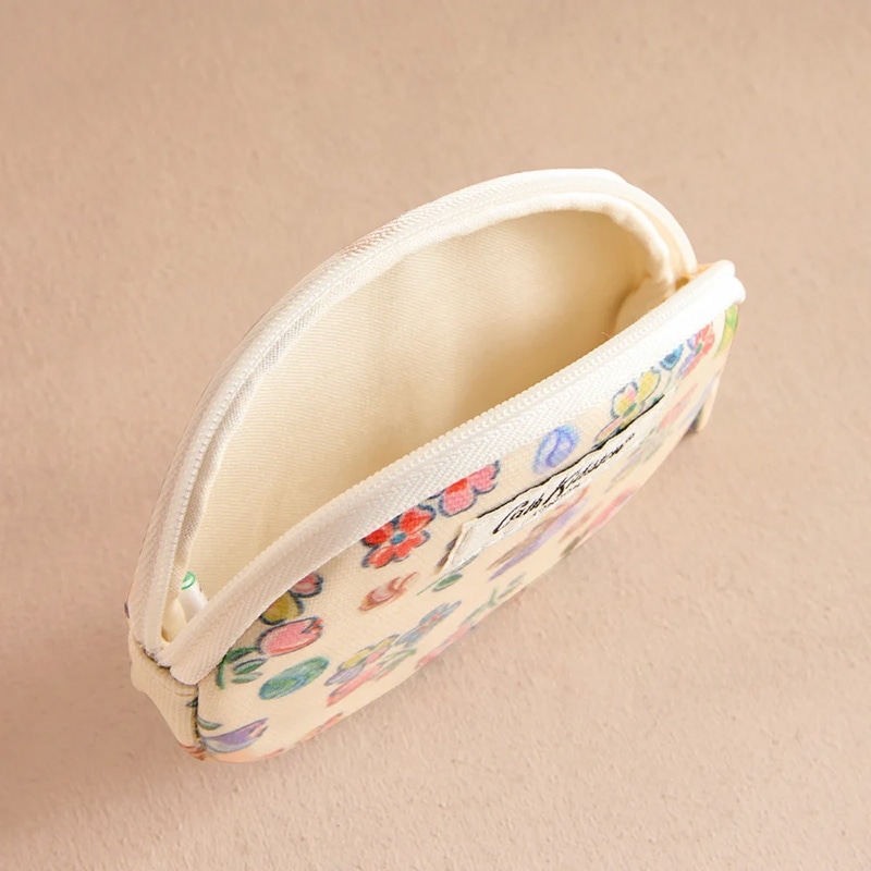 コーティングされたコットン製のオーバルコインパースは、小銭や鍵、小物など、こまごましたものを入れるのに最適です。繊細な手描きのビー玉(マーブル)と、生き生きと咲き誇る花々が組み合わさった華やかなプリント施されています。