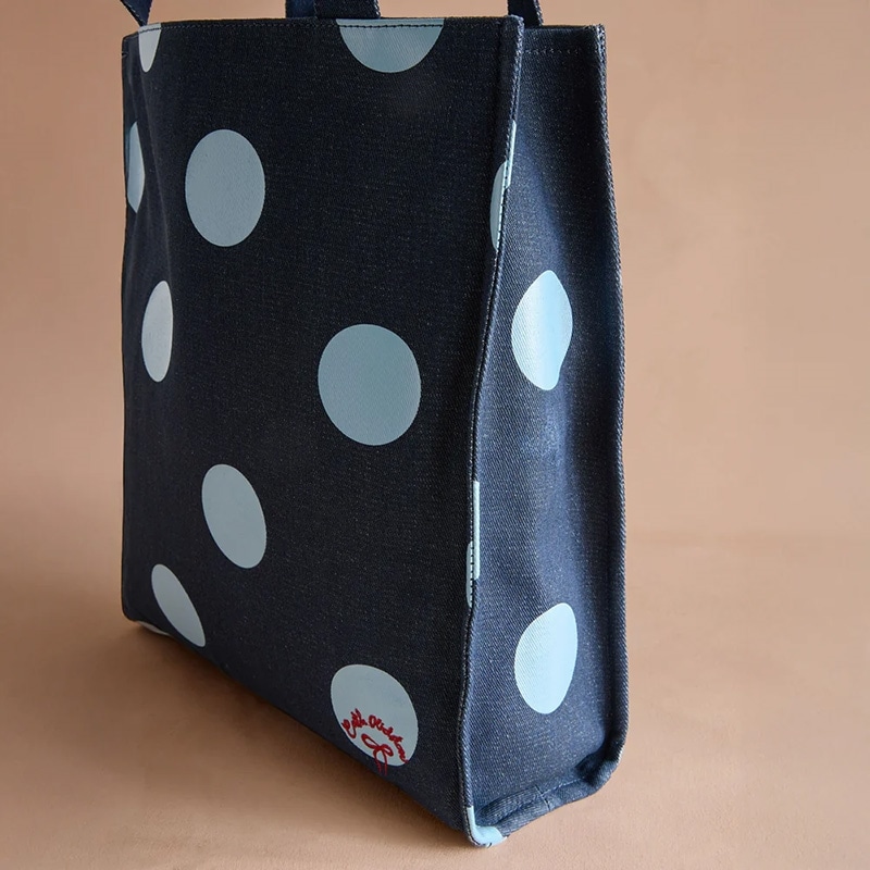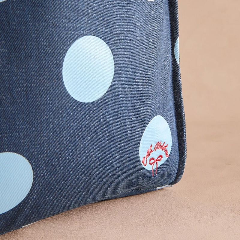 定番のラージブックバッグよりひとまわり大きなサイズのブックバッグ。内ポケット付きの使いやすいサイズのトートバッグです。デニムのようなカラーと、大きくアレンジしたCath KidstonらしいDenim Spotプリントがコーディネートのアクセントになってくれます。