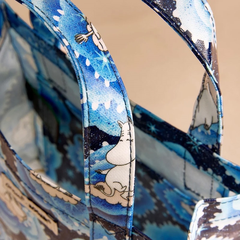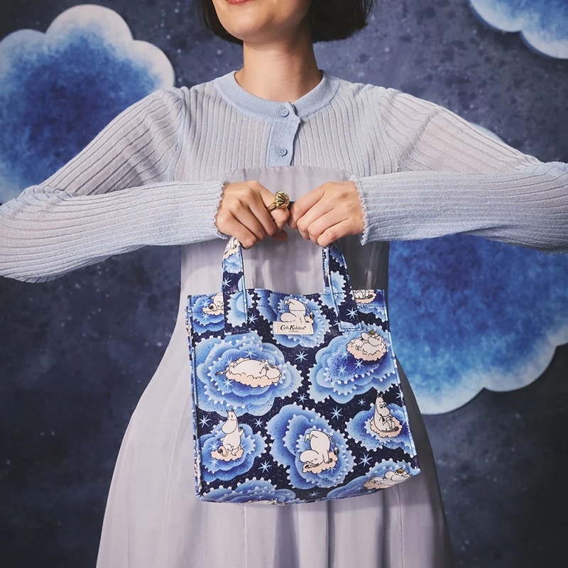 Cath Kidstonで人気のブックバッグの使いやすいスモールサイズ。特徴的なシルエットはそのままに、より小さく便利なサイズです。コーティングされた光沢のあるコットンは拭くことができ、お手入れも簡単です。夜空に浮かぶ雲や星々の中を漂うムーミントロールが描かれています。まるで夢の中のような、想像力あふれる感覚を表現しています。