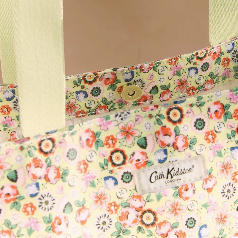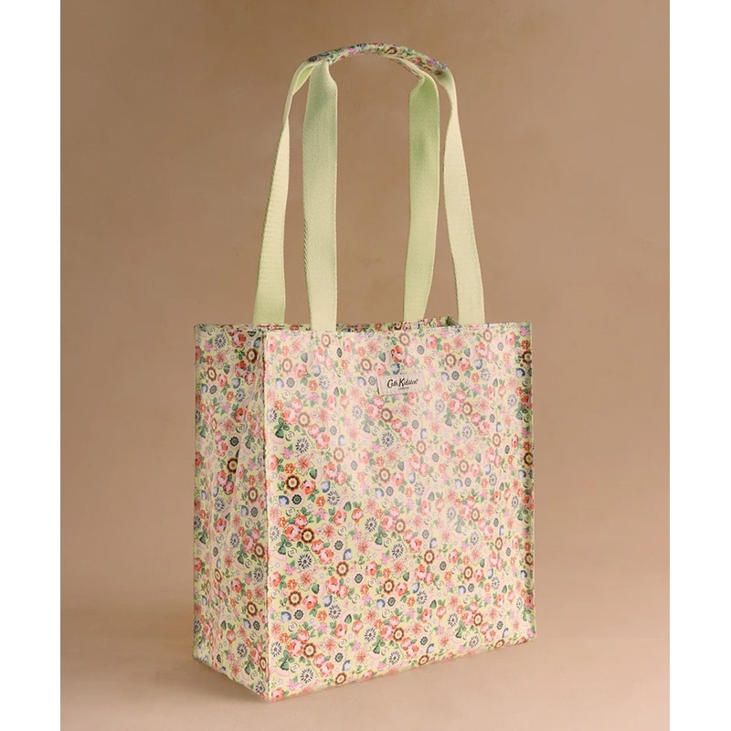 キャスキッドソンのミディアム ブックバッグは、大きすぎず小さすぎない、まさに理想のサイズ。軽量でありながら丈夫なコットン素材を使用し、内側にはハンギングポケットが付いています。東ロンドンの家庭を守る母(メイトリアーク)や女性たちへのオマージュを込めた、ノスタルジックなプリント。柔らかな明るいベースカラーに、サクラソウや宝石、そしてパールボタンが愛らしく配置されています。