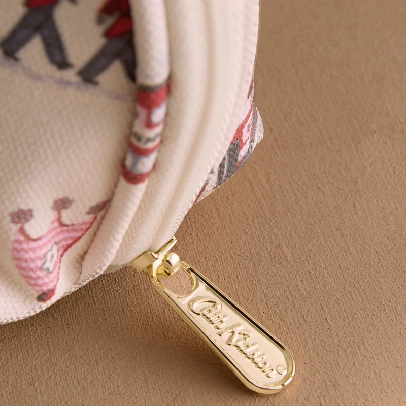コロンとしたフォルムが特徴的なハーフムーンポーチ。小銭やアクセサリー、イヤホンなど、バラつきがちな必需品を収納するのに最適なサイズ感。コンパクトで実用的なアイテムです。ロンドンのアイコニックな風景に、Cath Kidstonらしい遊び心をプラスしました。近衛兵や馬、そして様々なポーズをとるスタンリーとその仲間たちまで、キャラクター一人ひとりが愛情と個性たっぷりに描かれています。