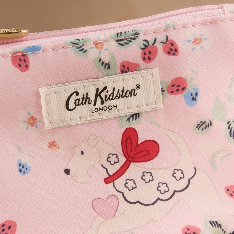丈夫なポリエステル素材でできたジップドパースは、ダブルファスナーで開閉もラクラク。コンパクトなので、ポケットやバッグにスマートに収まります。アーカイブから復活したチャーミングで華やかなデザイン。繊細な花々とイチゴが散りばめられた中を、スタンリー、ビグルス、クイニーといった愛らしい犬たちが、楽しそうにダンスをしたり飛び跳ねたりしています。キャラクター一人ひとりに遊び心たっぷりのハートが添えられているのもポイントです。