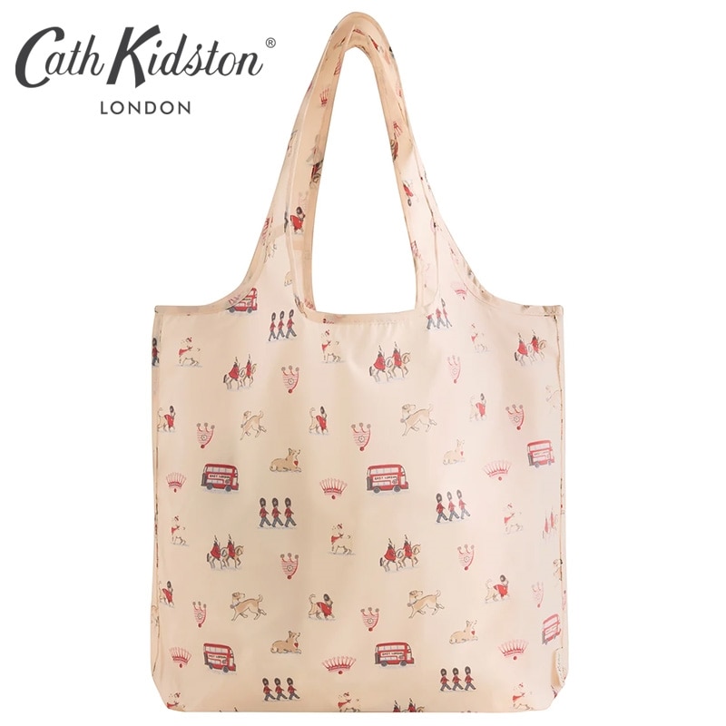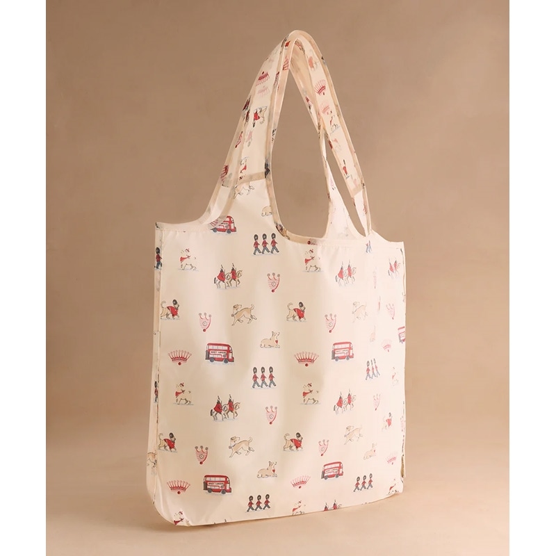 フォルダウェイショッパーは、小さく折り畳んでバッグの中にすっぽり収まるので、お買い物はもちろん、ちょっとしたお出かけにも大活躍。地球に優しいリサイクルポリエステルを使用しています。ロンドンのアイコニックな風景に、Cath Kidstonらしい遊び心をプラスしました。近衛兵や馬、そして様々なポーズをとるスタンリーとその仲間たちまで、キャラクター一人ひとりが愛情と個性たっぷりに描かれています。