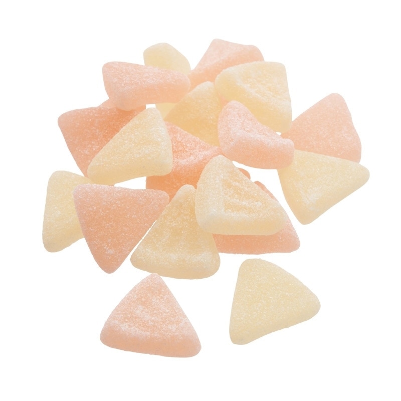 見た目は甘そうに見えるけれど、一口食べてみるとジューシーなグレープフルーツの味と酸味が口の中いっぱいに広がるグミキャンディです。すこし柔らか目なグミは、グレープフルーツのむいた実の形。