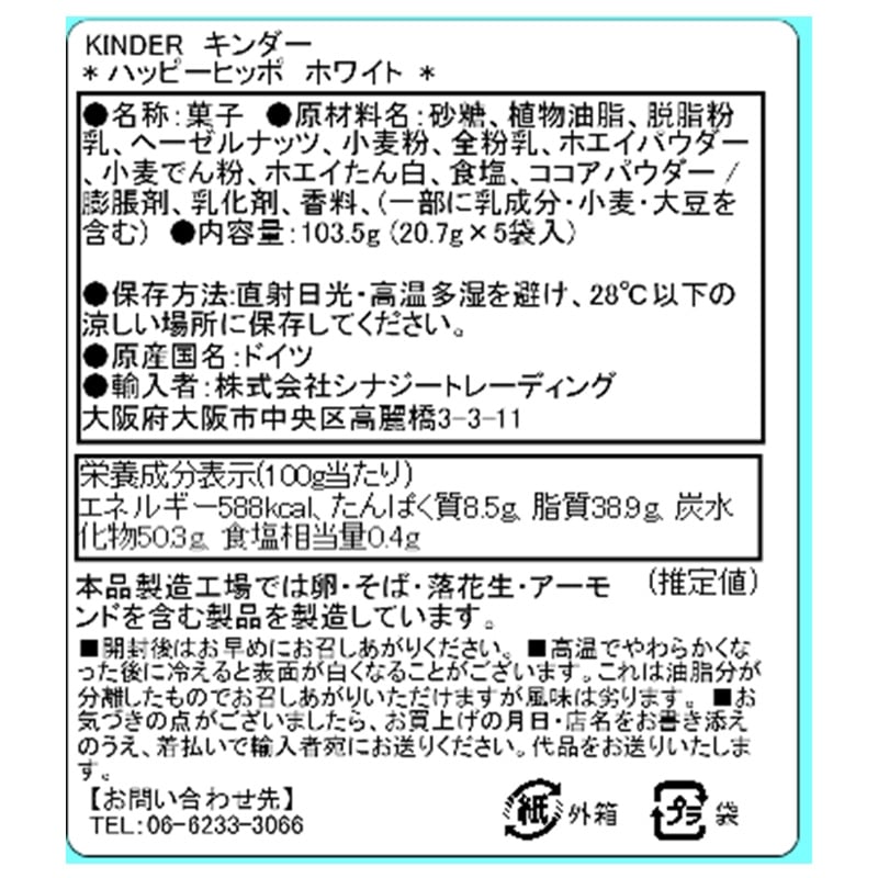 Kinder キンダー ハッピーヒッポ ホワイト