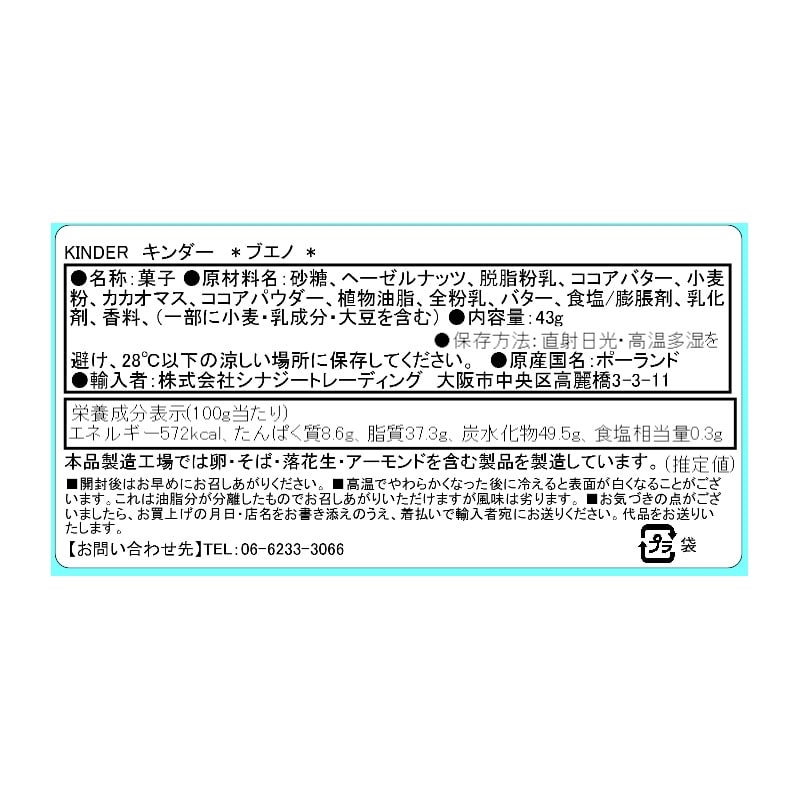 海外のお土産にも人気のある「Kinder(キンダー)」のお菓子がラインアップ。チョコレートコーティングしたサクサクのウエハースにトロッとしたミルクヘーゼルナッツクリームがインした"ブエノ"と、ミルクコーティングしたウエハースとミルクヘーゼルナッツクリームがまろやかな美味しさの"ブエノ ホワイト"の2種類です。 なめらかなクリームとサクサクのウエハースの食感も絶妙♪ 食べやすいスティックタイプは携帯にも便利。外出先やおやつなど気軽に楽しめます。