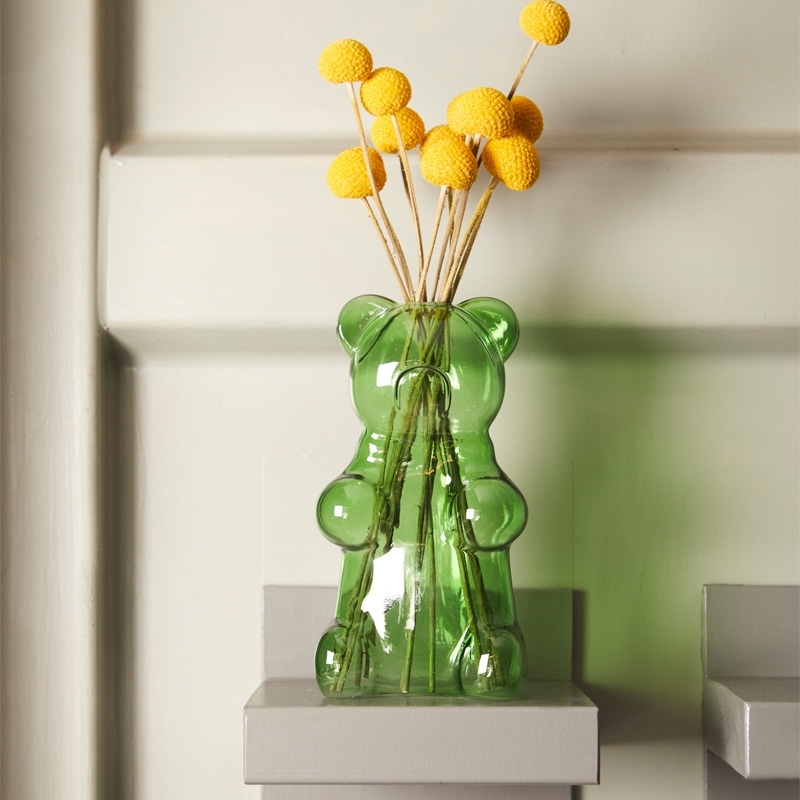 ガラスでできたグミベアの花瓶です。クリア感とツヤツヤ感がなんとも可愛い♪置いておくだけでも造花を立てても素敵です。