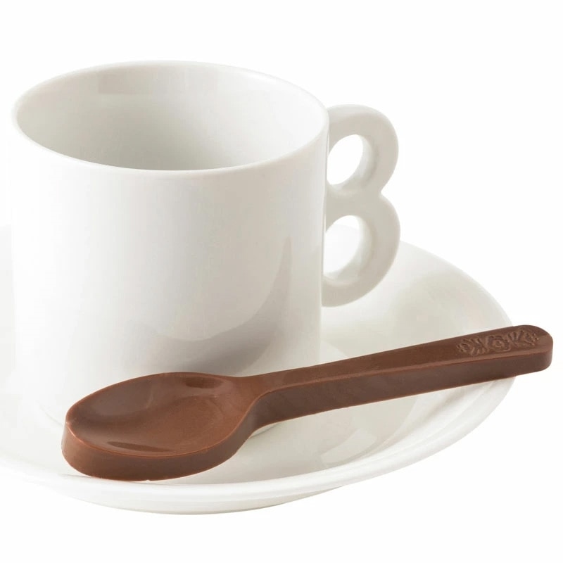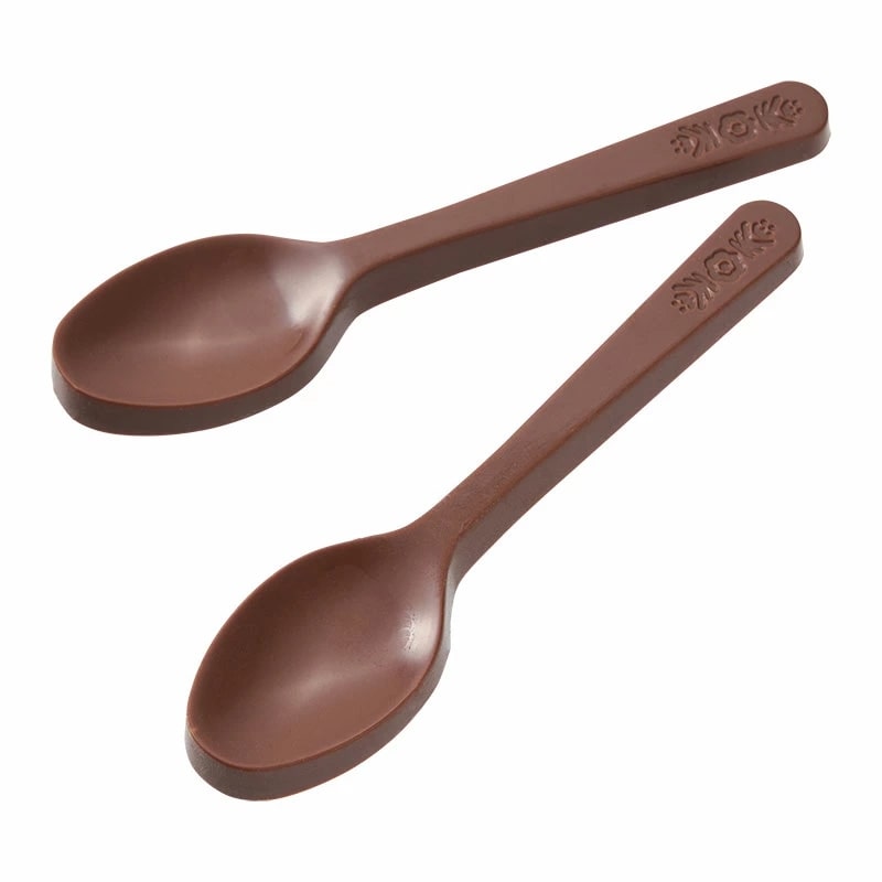 可愛いスプーン型のミルクチョコレートの2本入りが登場! ホットミルクをステアするとスプーンが溶けてホットチョコレートに♪ ブレイクタイムを楽しく演出します。
