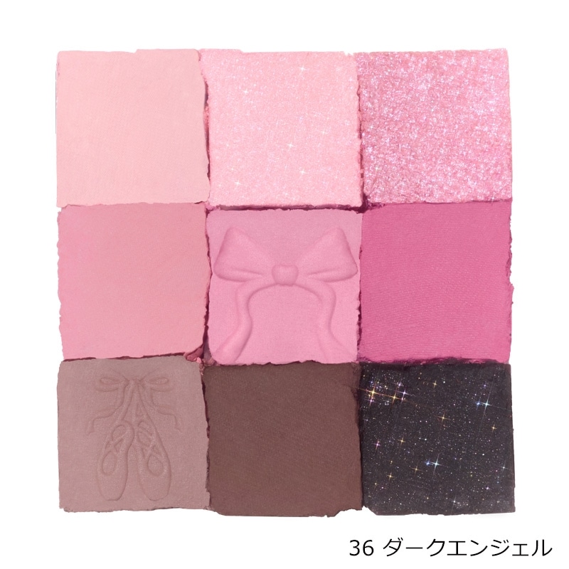 バレエからインスピレーションを得た、9色入りのシャドウパレット。優雅で愛らしいピンクを基調に、ブラックスワンのシックな世界観をプラスしたカラーラインナップ。どんなシーンにも使いやすいナチュラルな発色で、デイリー使いにピッタリのパレットです。
