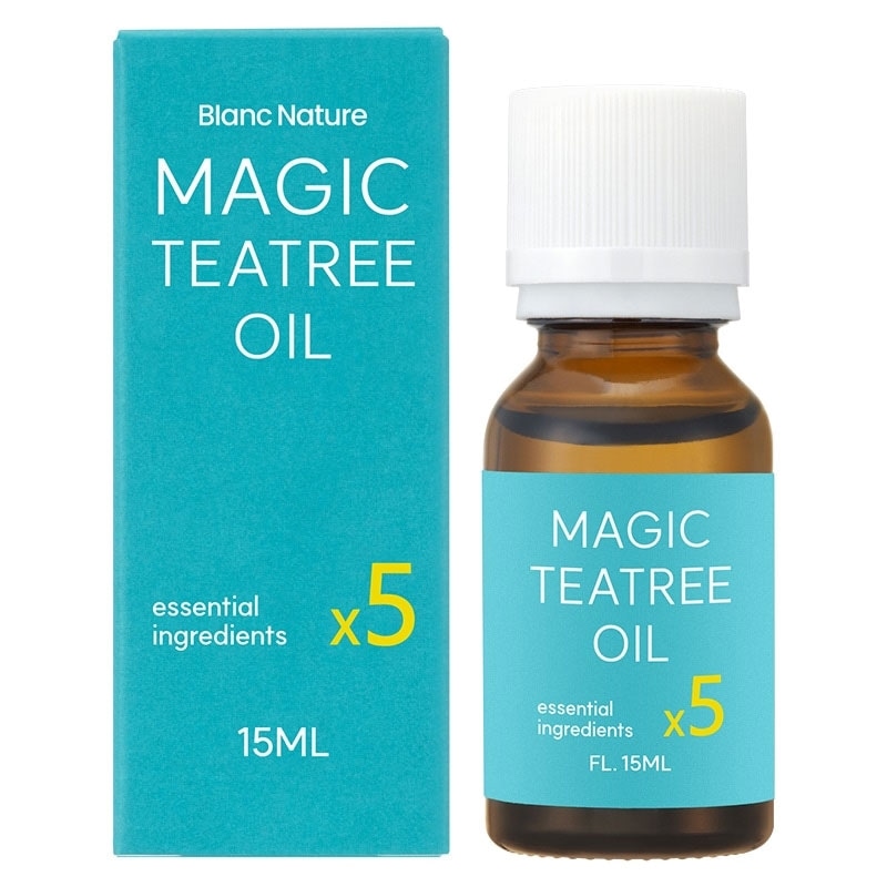 PLAZA・MINiPLA他4社先行販売!韓国スキンケアブランド「ブラン」のスポット集中ケア用 ティーツリー(※)オイル。スキンケアの一番最後にマジックティーツリー(※)オイルを綿棒に1~2滴落として気になる肌荒れ部位にトントンと直接塗ってケアします。
