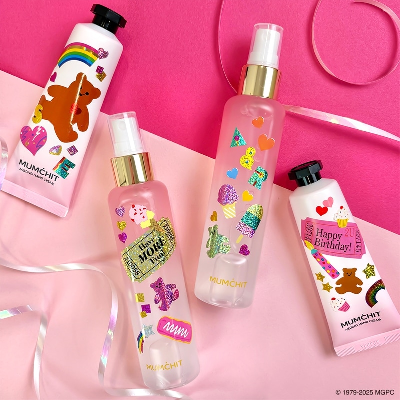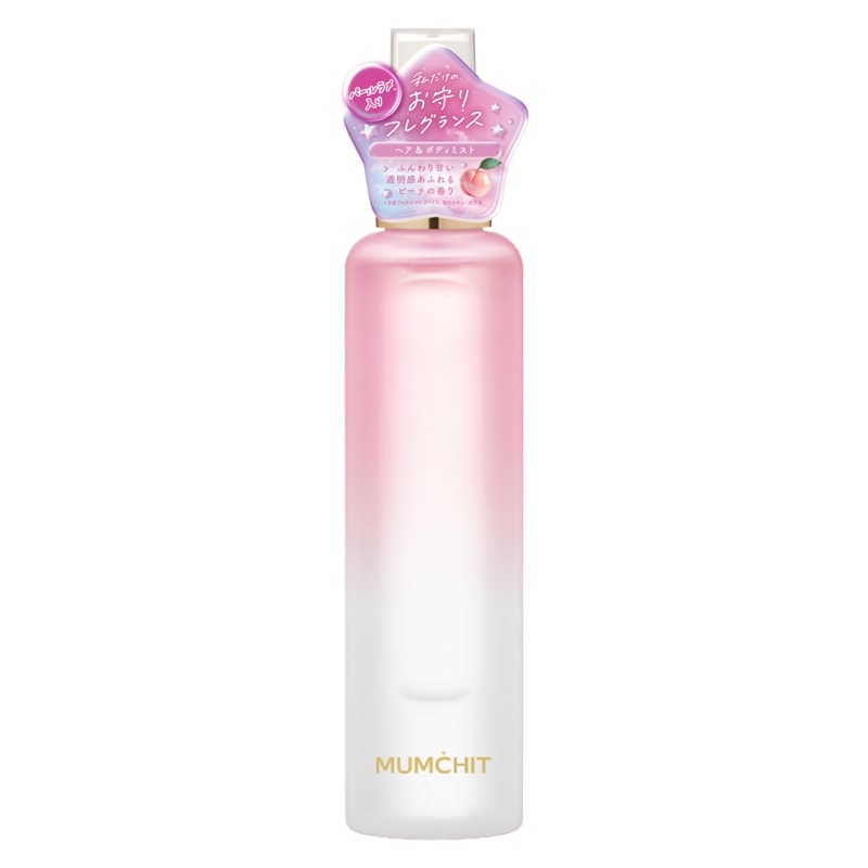 PLAZA・MINiPLA限定!PLAZA×TBS×青山学院高等部×MUMCHITが共同開発した、ピーチの香りのヘア&ボディミスト。“お守り”のように日常に寄り添えるよう、嬉しい日にも落ち込んだ日にもそっと背中を押してくれるアイテムです。ふんわり甘い香りが全身をやさしく包み込むように広がる、持ち歩きたくなるフレグランスです。パール(※)入りで、ピンク×白のグラデーションカラーボトル越しに透けて見えるキラキラ感にも気分が上がります。空白のデザインにお気に入りのシールや好きな言葉を書き込んで、自分だけのお守りにしたり、お友達への特別なプレゼントにしたり、オリジナルボトルにするのもおすすめです。