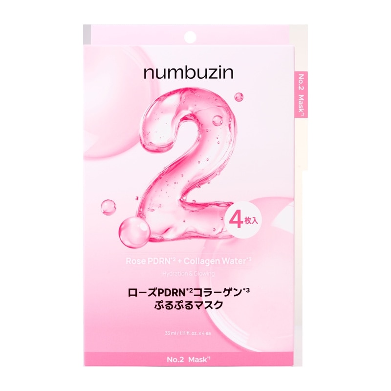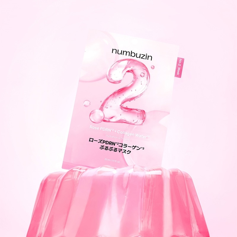 「numbuzin(ナンバーズイン)」の2番シートマスクがローズPDRN(※1)の配合や低分子コラーゲン(※2)含有のぷるぷるのゼリーテクスチャーシートになるなどパワーアップ(※3)リニューアル。お肌にぴたっと密着したシートが美容成分を浸透(※4)させ、ハリとうるおいのある明るいお肌へ(※5)と導きます。